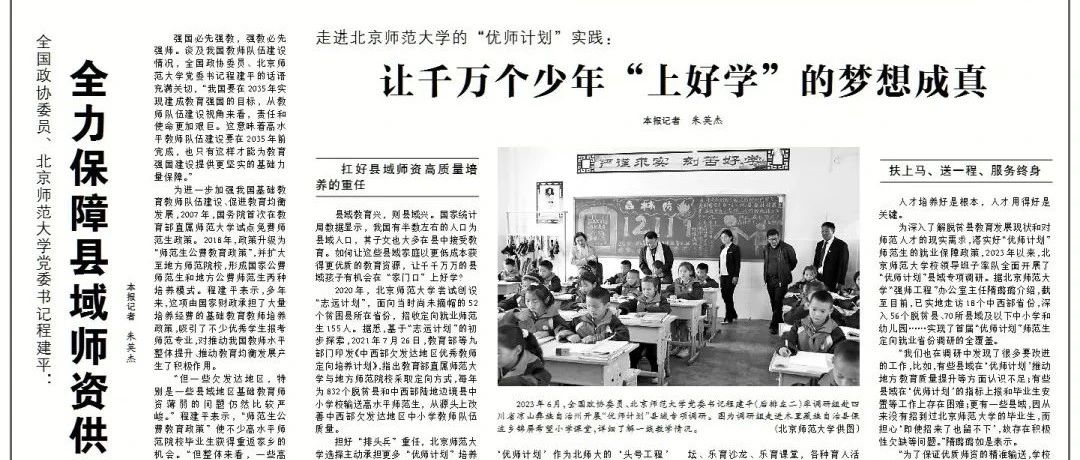 强国有我丨《人民政协报》整版报道!北师大“优师计划”培养实践
